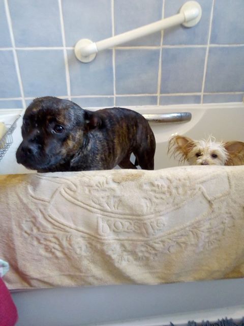 Last weekend we did a short walk in memory of human’s friend, Jess’s dog. Baloo was a little black rescue dog who sadly lost his battle with a canine cancer a year ago. So all of Jess’ friends all did a walk in memory of Baloo and posted photos on social media. Unfortunately human couldn’t take all 3 of us on two leads (small human has a lead too attached to a small bag on her back), so it was decided that we’d all walk, toddle and run around out garden a few times. But as you know, nothing goes to plan here! As the chickens had been out and about in the garden earlier, both myself and the silent Staffie decided to rub our heads and roll in as much chicken poo as was canine possible. We ended up having to have a bath (well 2 baths to be honest) due to being rather smelly and sticky. But I’m sure Baloo would have been very proud of us as we know he was a avid supporter of rolling in poo as well.